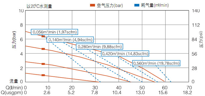 最大自吸高度自吸高度隨著泵的球,球座和隔膜的不同材質的組合而變化